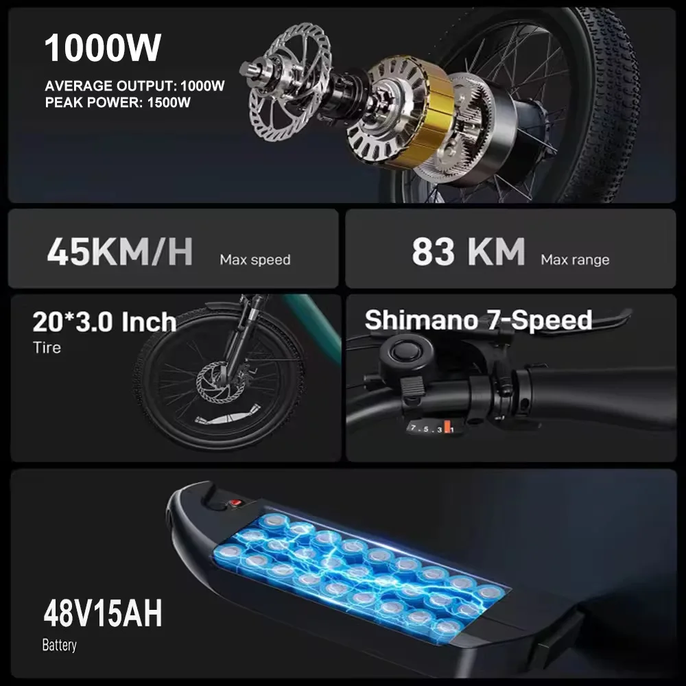 • Battery: 48v 13/15/ah Lithium battery (removable)