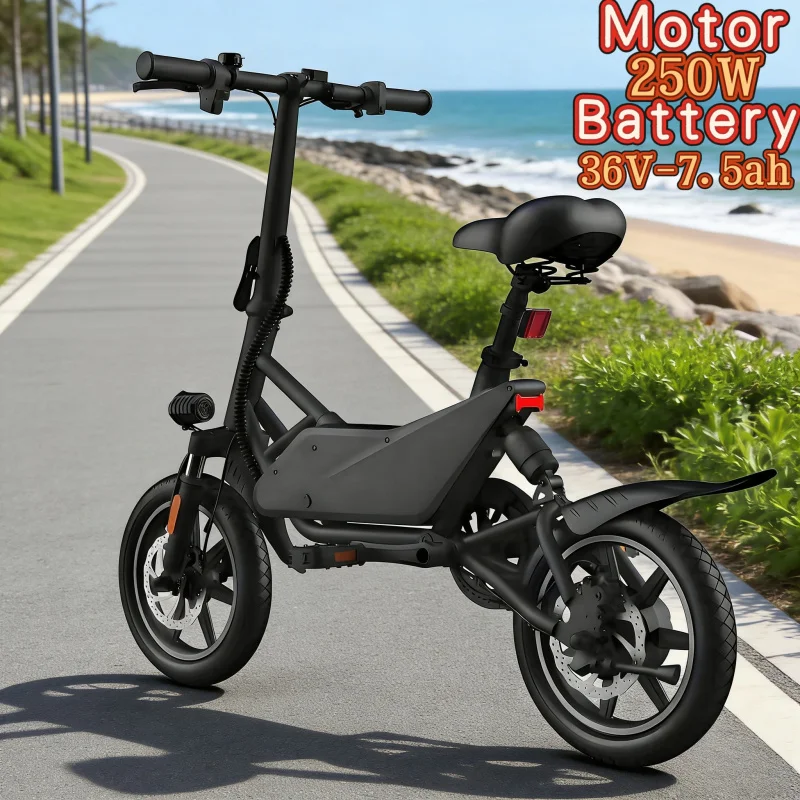 36V7.5AH lithium battery electric bicycle city transportation 250W brushless motor electric bicycle 14-inch fashionable foldable
