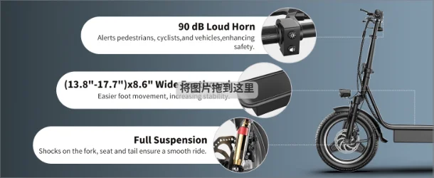 ⚡【Worry-free Combination】: 14" pneumatic tires, designed to handle various terrains. Combined with front fork suspension, whether you're navigating city streets or off-road trails scooter electric delivers a smooth, comfortable ride