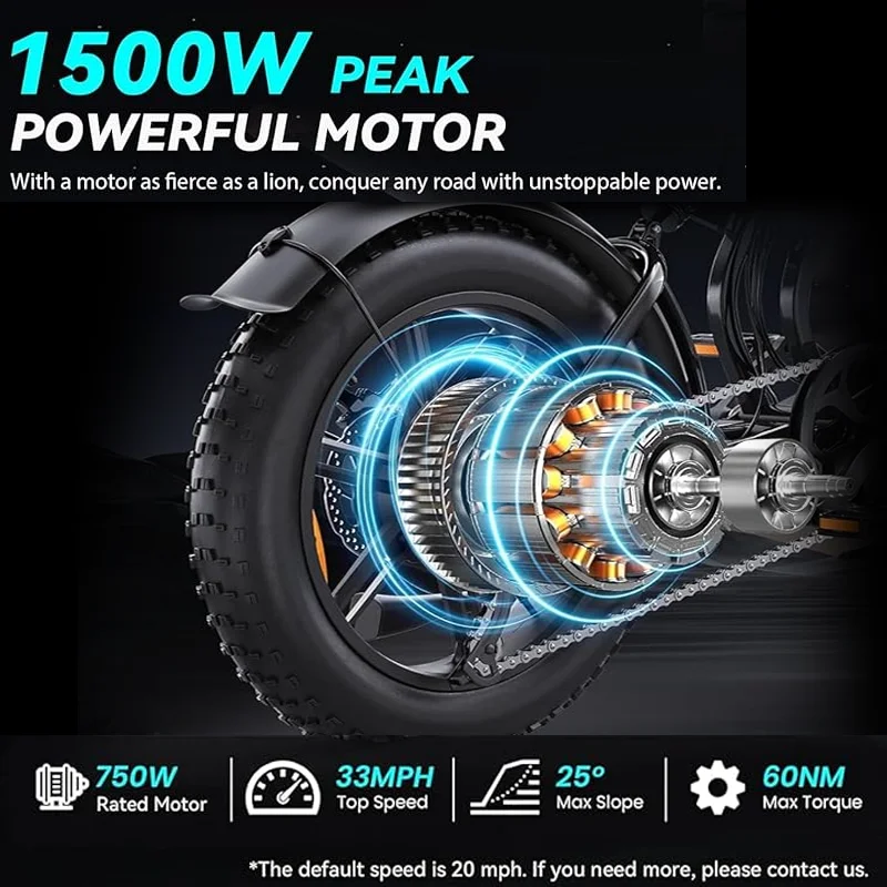 🚀【Peak 1500W Motor & 33MPH Top Speed】This electric mountain bikes for adults equipped with a 750W brushless motor (peak 1500W), this e-bike delivers strong torque to tackle hills, rough roads, and daily commutes effortlessly. Default speed 20MPH meets daily needs, while max 33MPH (contact us if you need) satisfies your desire for efficient travel, cutting commute time by half.