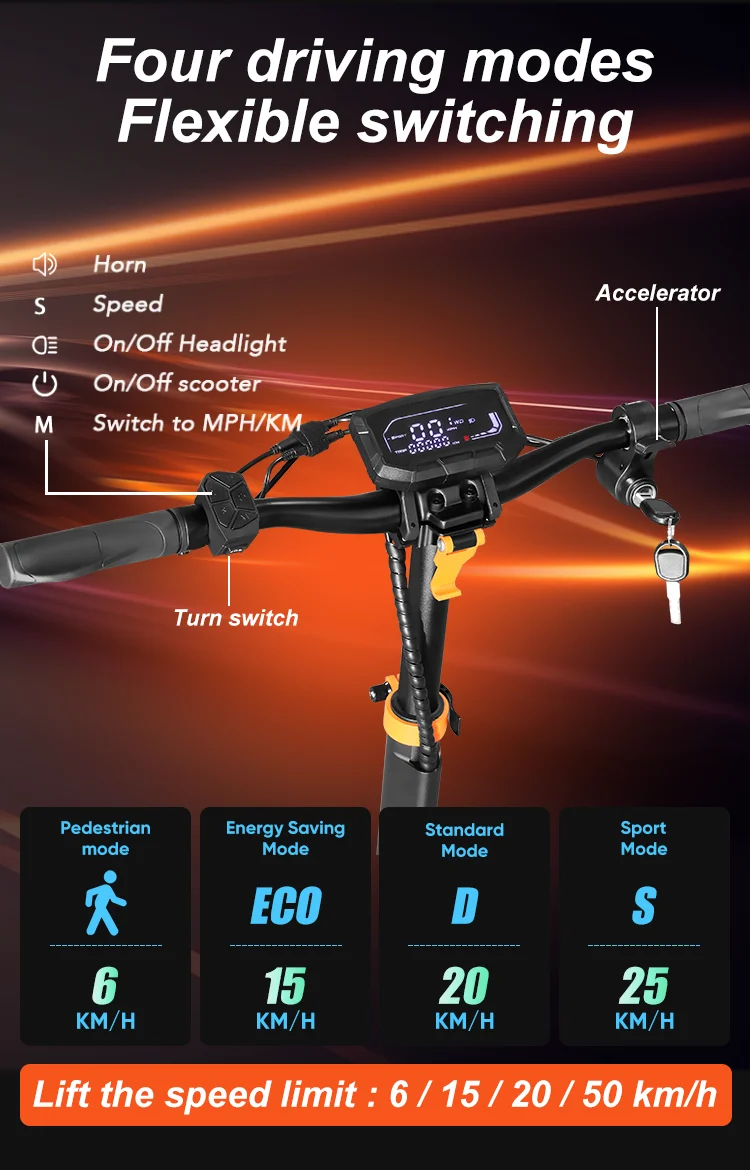 Max speed: 31MPH (50km/h) (Need to lift the speed limit)