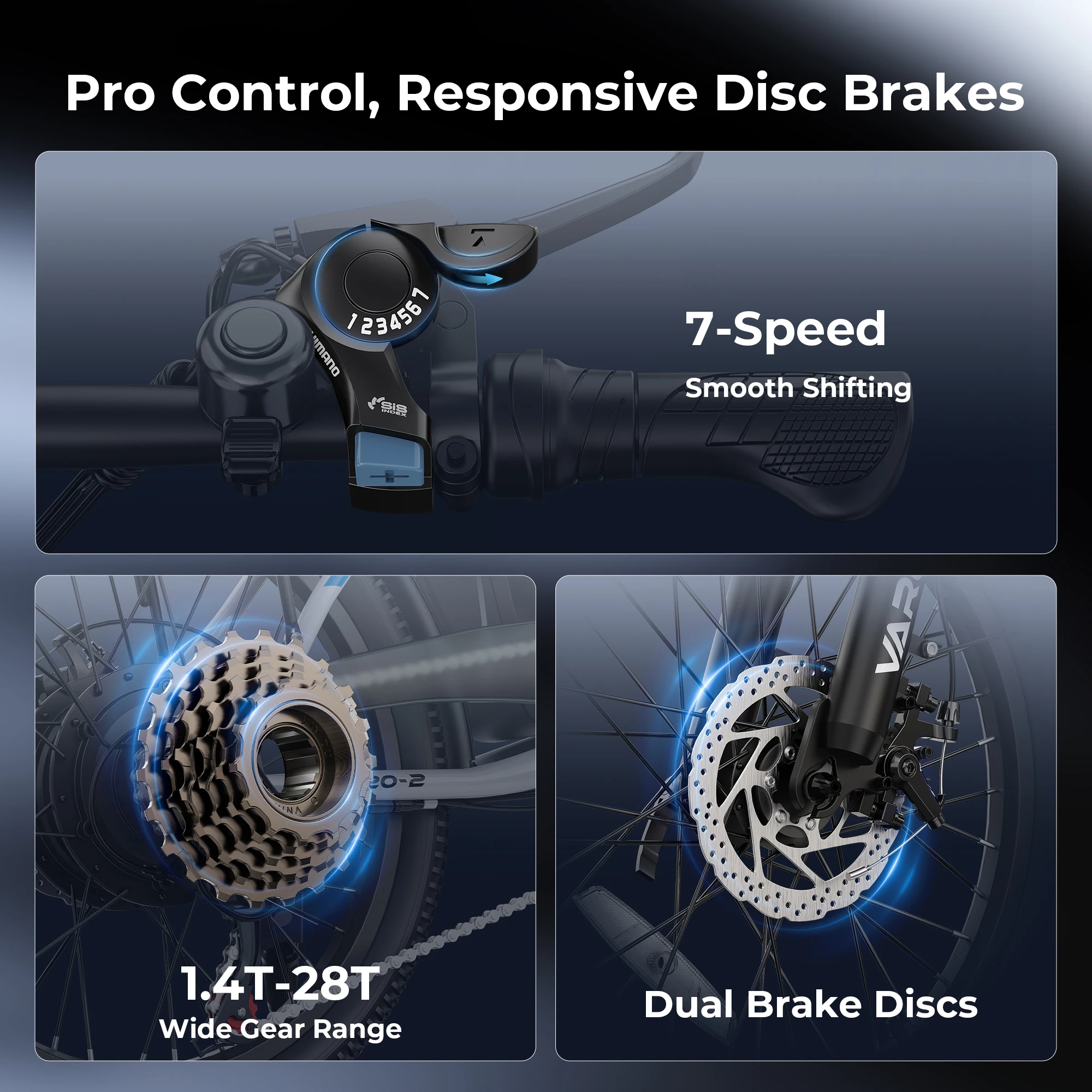 Switch effortlessly between 4 riding modes—Normal, Pure Electric, Pedal Assist, and Cruise Mode—to match your needs. The 7-speed gearbox and responsive disc brakes ensure smooth and safe control, while comfort upgrades like 20-inch puncture-resistant tires, an easy-to-read LED display, and adjustable handlebars make every ride more enjoyable