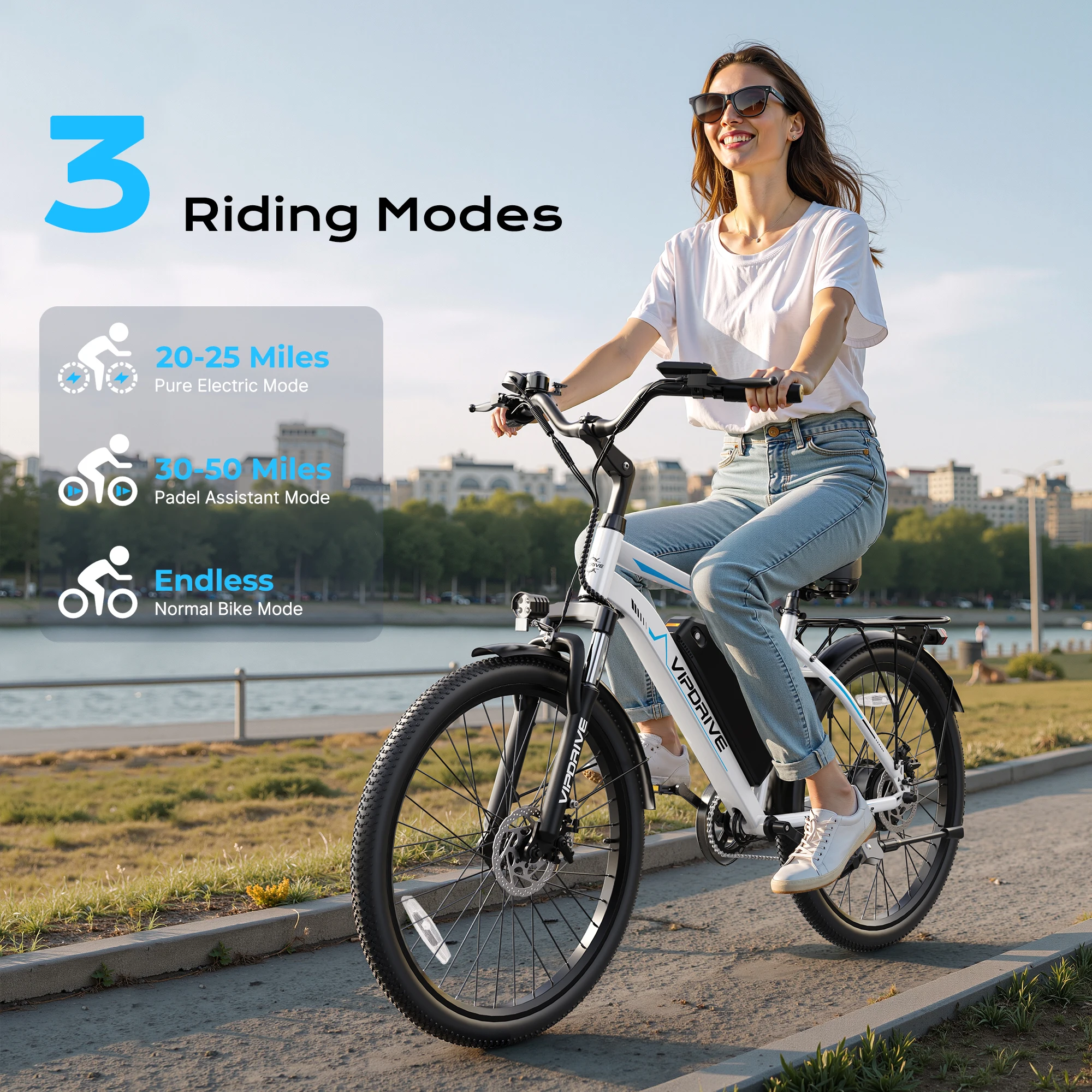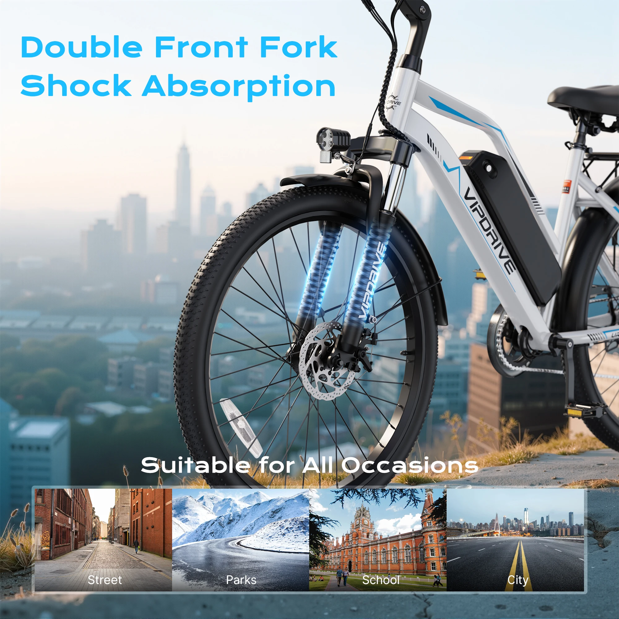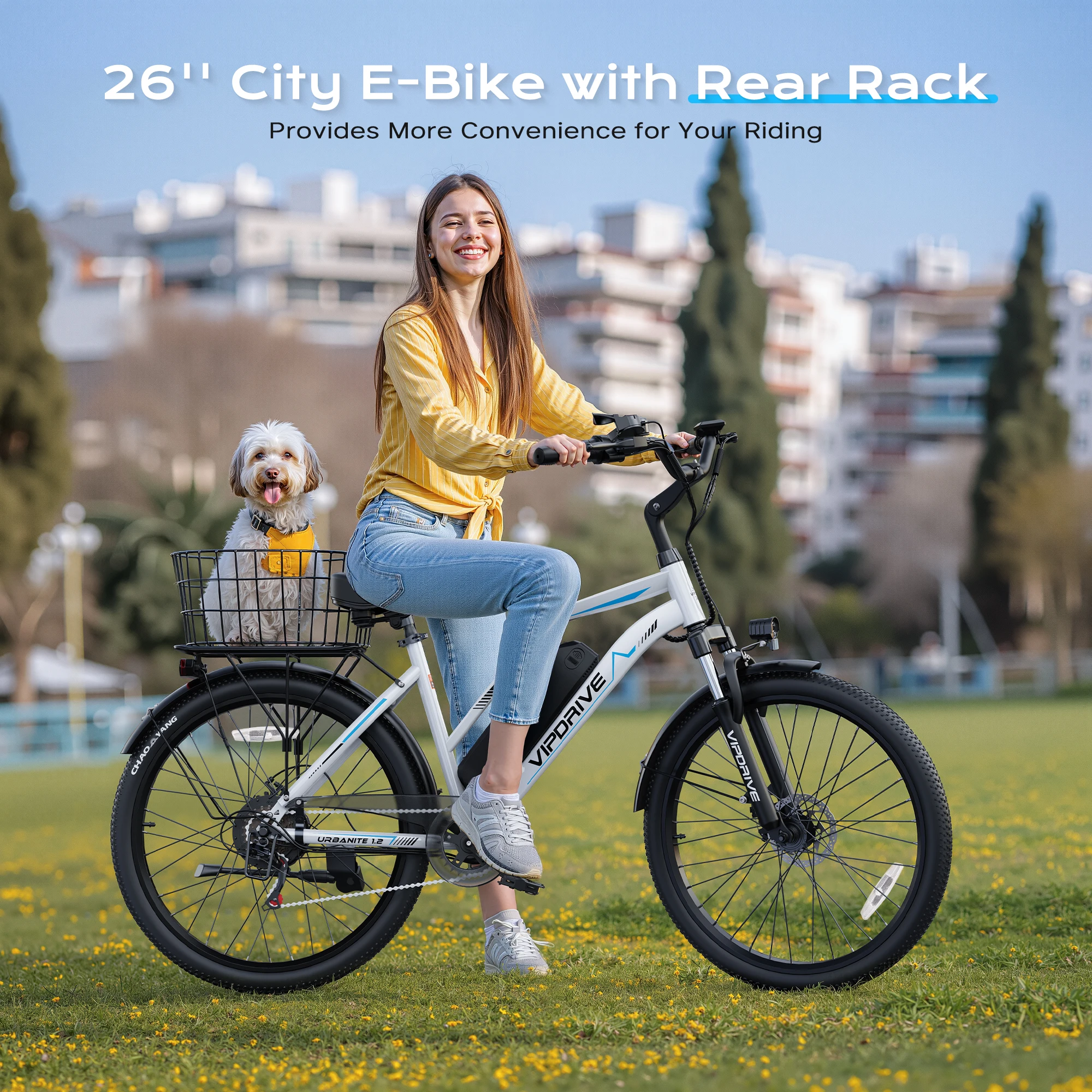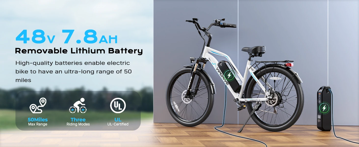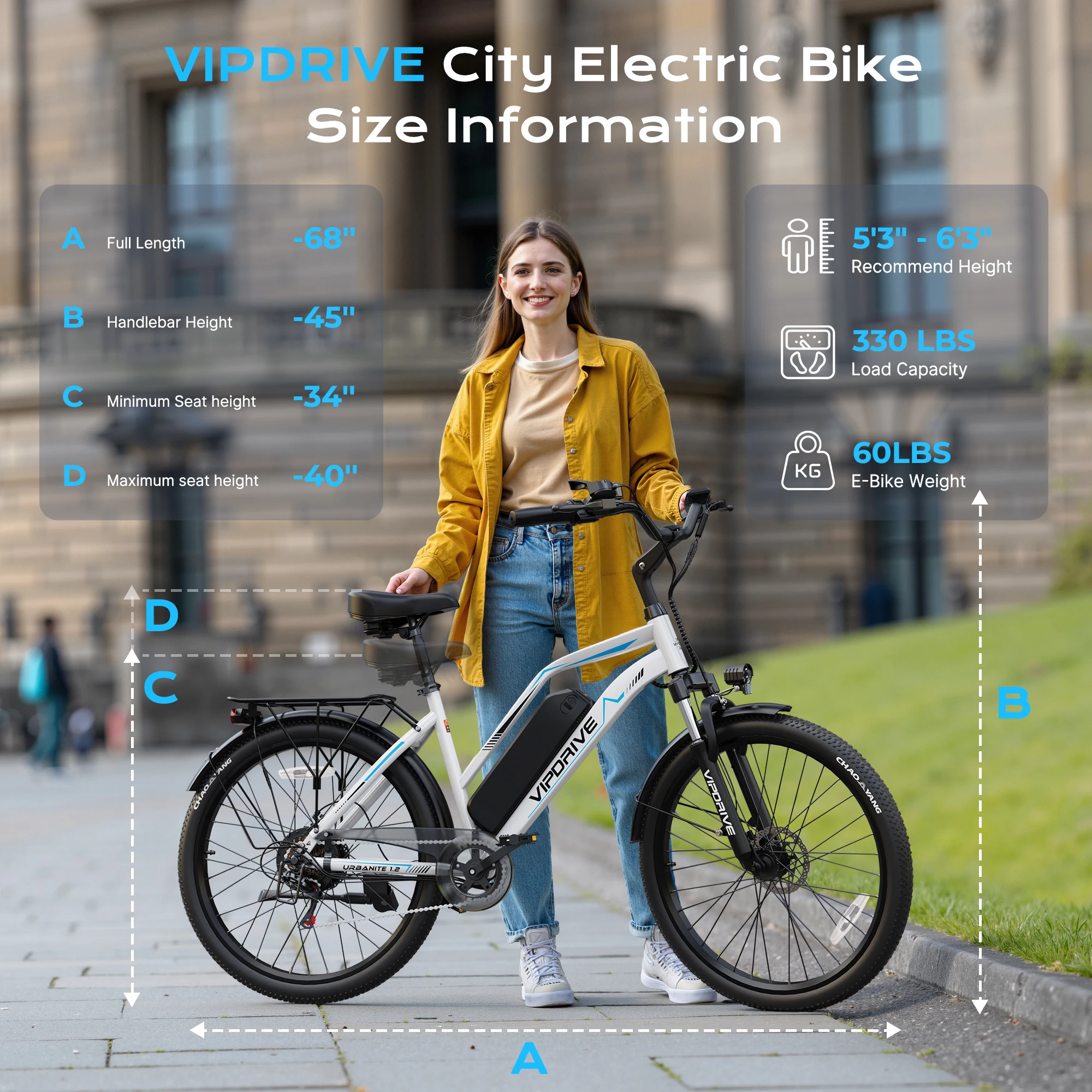 VIPDRIVE Urbanite 1.2 Adult Electric Bike, 750W Peak Power, 48V 7.8Ah Battery, 26-inch City E-bike, UL2849